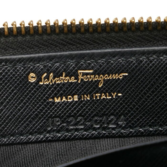 サルヴァトーレフェラガモ ヴァラリボン 長財布 L字ファスナー ブラック レザー レディース Salvatore Ferragamo 【中古】