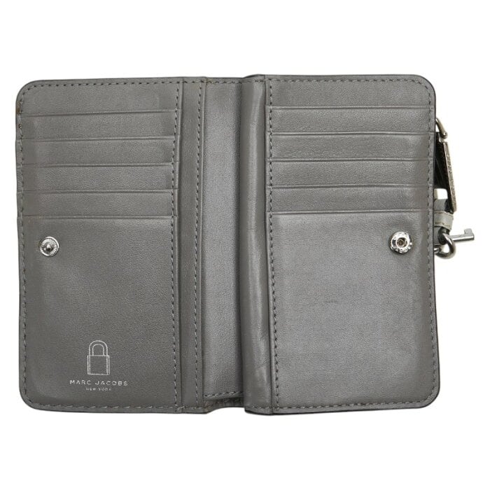マークジェイコブス ロゴ 二つ折り財布 グレー レザー レディース MARC JACOBS 【中古】