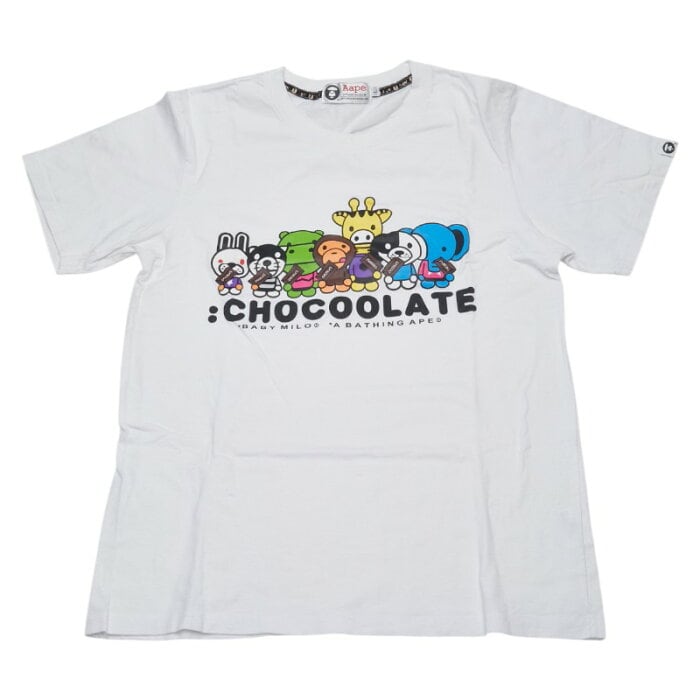 アベイシングエイプ BABY MILO チョコレート 半袖Tシャツ サイズ:L ホワイト マルチカラー コットン レディース A BATHING APE 【中古】