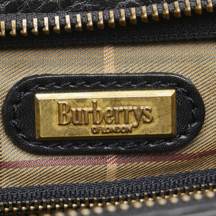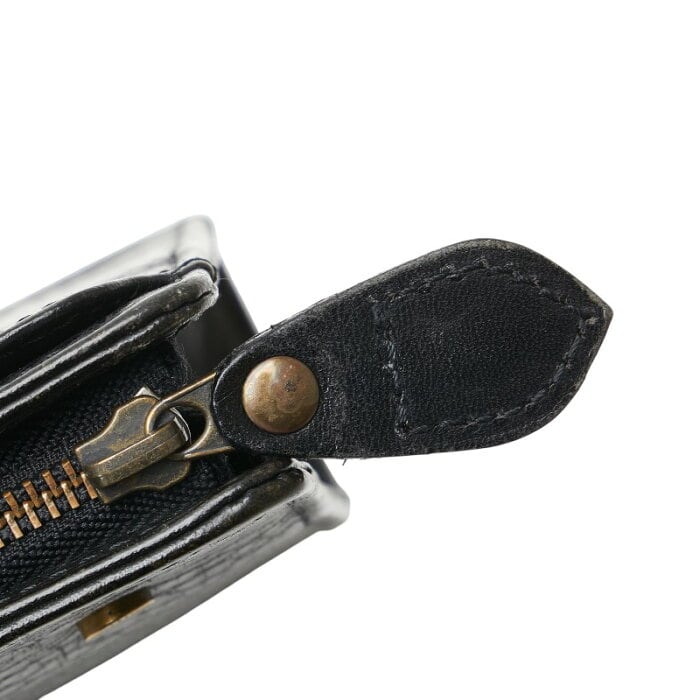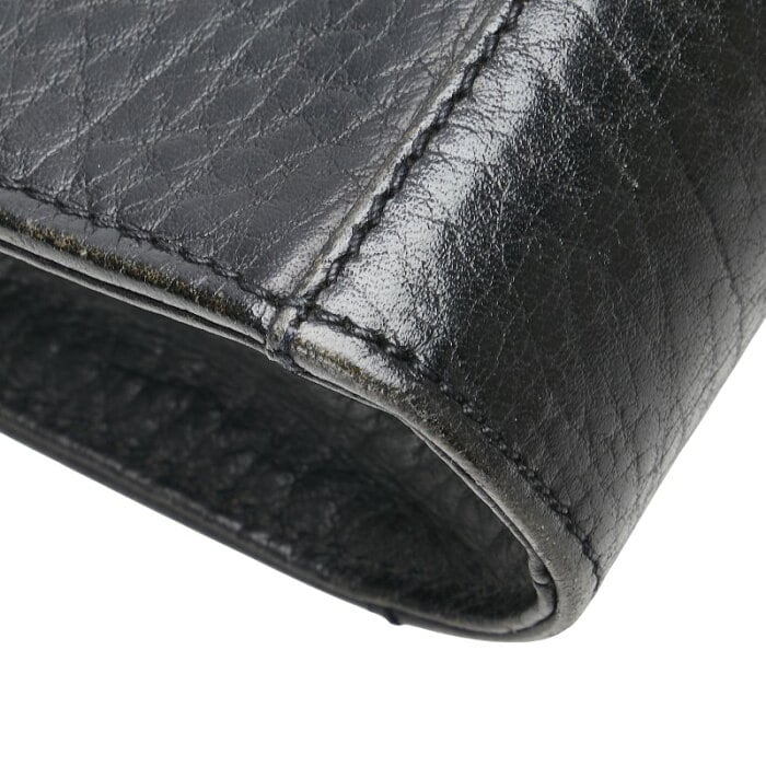 チェック ブランドロゴ クラッチバッグ ブラック レザー レディース 【中古】