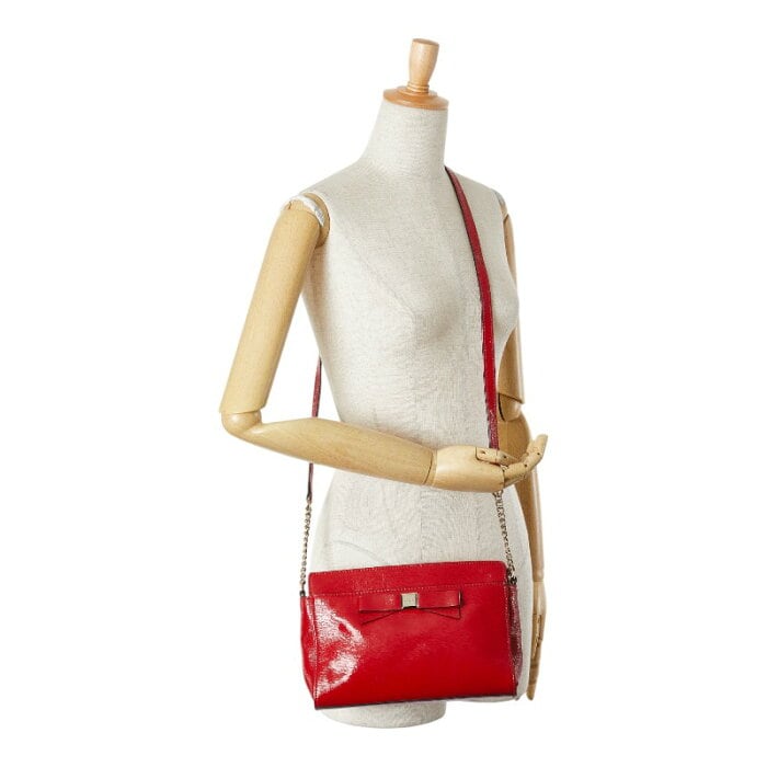 ケイトスペード リボン 斜め掛け チェーン ショルダーバッグ レッド エナメル レディース Kate Spade 【中古】
