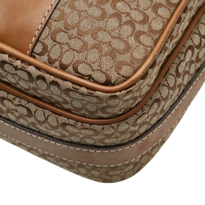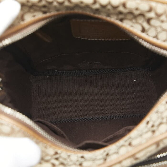 コーチ ミニ シグネチャー 斜め掛け ショルダーバッグ ベージュ ブラウン キャンバス レザー レディース COACH 【中古】