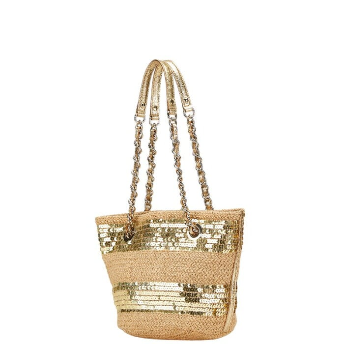 ケイトスペード スパンコール チェーン ハンドバッグ ベージュ ゴールド 麻・リネン レザー レディース Kate Spade 【中古】
