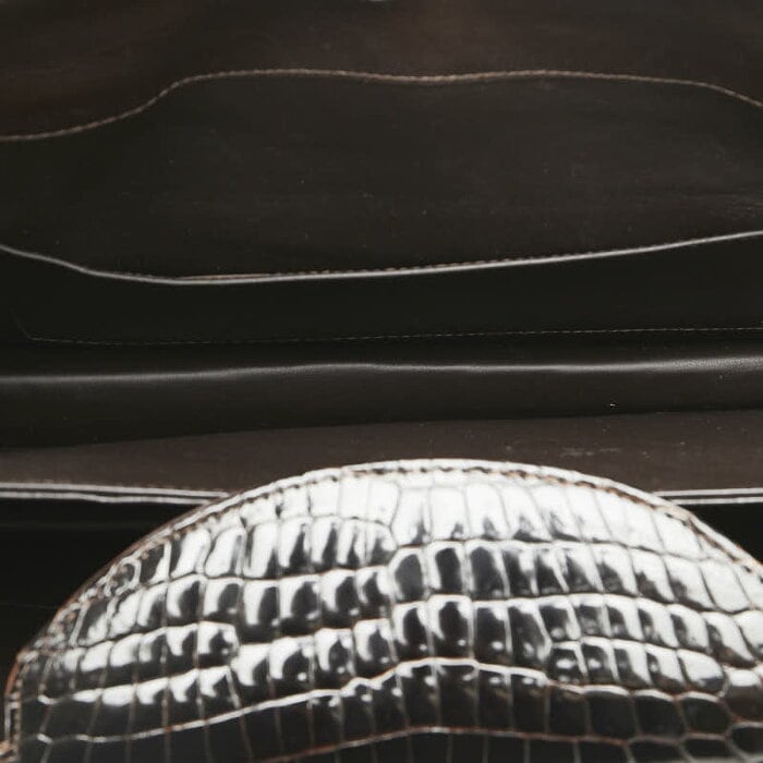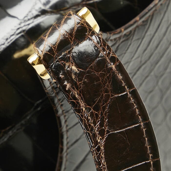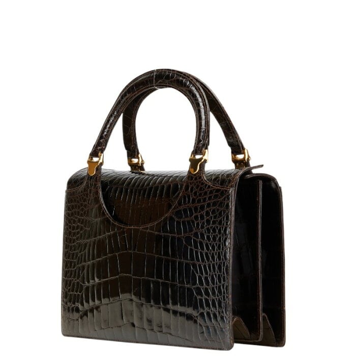 ミラショーン クロコ型押し ハンドバッグ ブラウン レザー レディース mila schon 【中古】