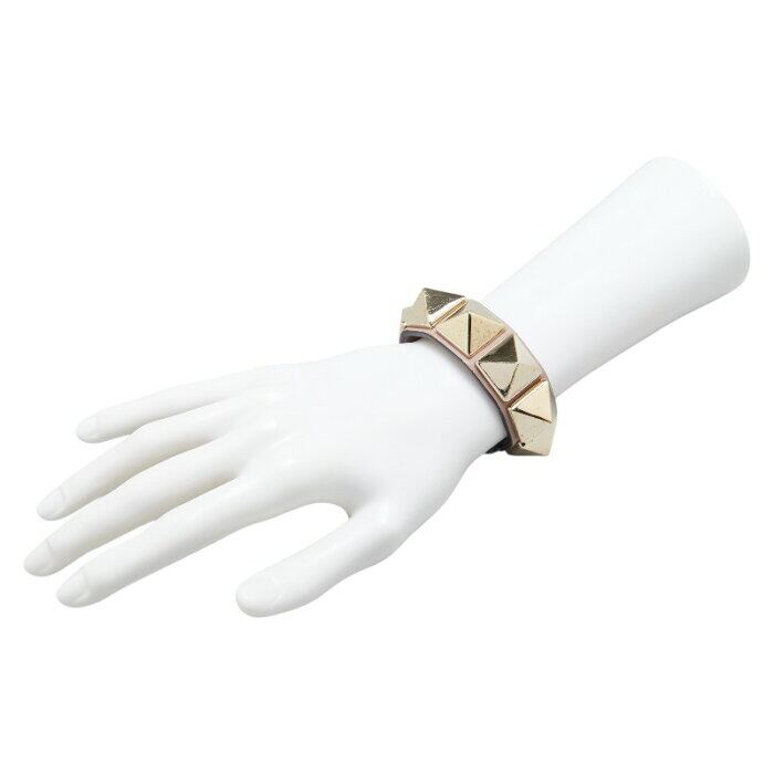ヴァレンティノ ロックスタッズ ブレスレット ピンクベージュ ゴールド レザー レディース VALENTINO 【中古】