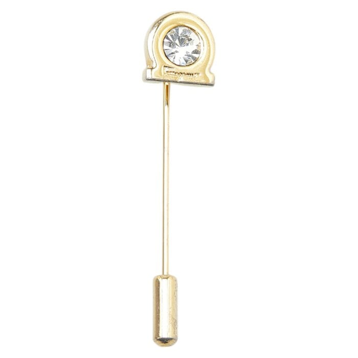 サルヴァトーレフェラガモ ガンチーニ ラインストーン ピンブローチ ゴールド メッキ レディース Salvatore Ferragamo 【中古】