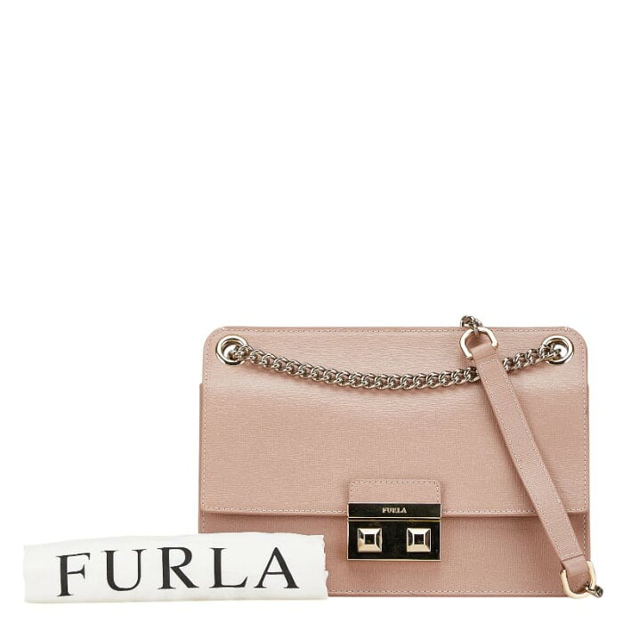 フルラ チェーン ショルダーバッグ ハンドバッグ ピンク ゴールド レザー レディース Furla 【中古】