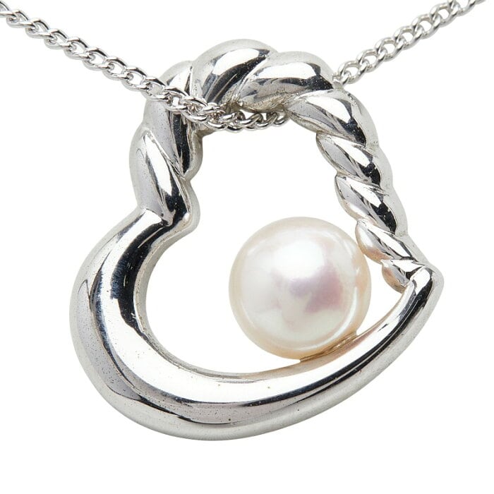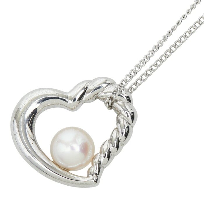 タサキ SV925 シルバー アコヤパール6.8mm ハートモチーフ NSチェーン □Sトップ ネックレス レディース TASAKI 【中古】