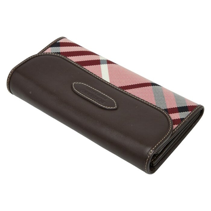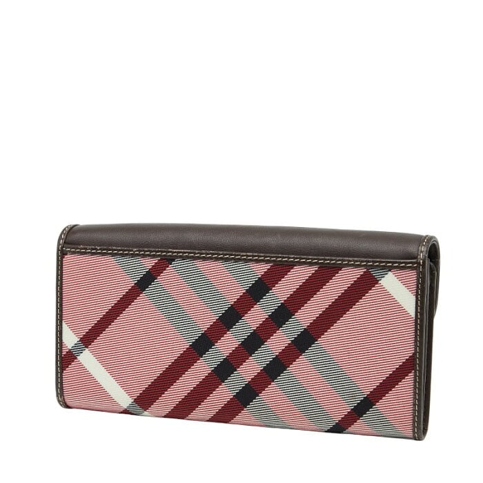 バーバリーブルーレーベル ノバチェック 長財布 ブラウン レッド ナイロン レザー レディース BURBERRY BLUE LABEL 【中古】