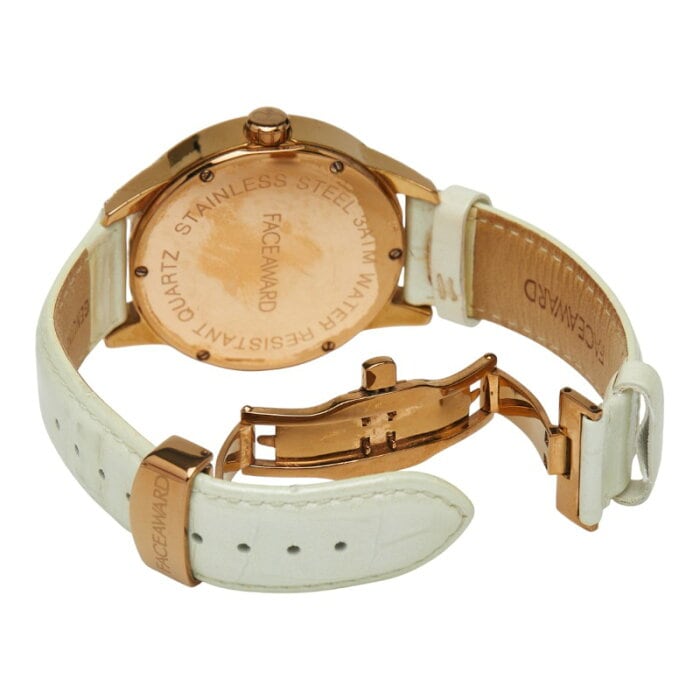 フェイスアワード スワロフスキー ジルコニア 腕時計 42Grace クオーツ ゴールド文字盤 ステンレススチール レザー レディース FACEAWARD 【中古】