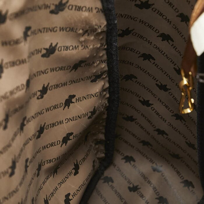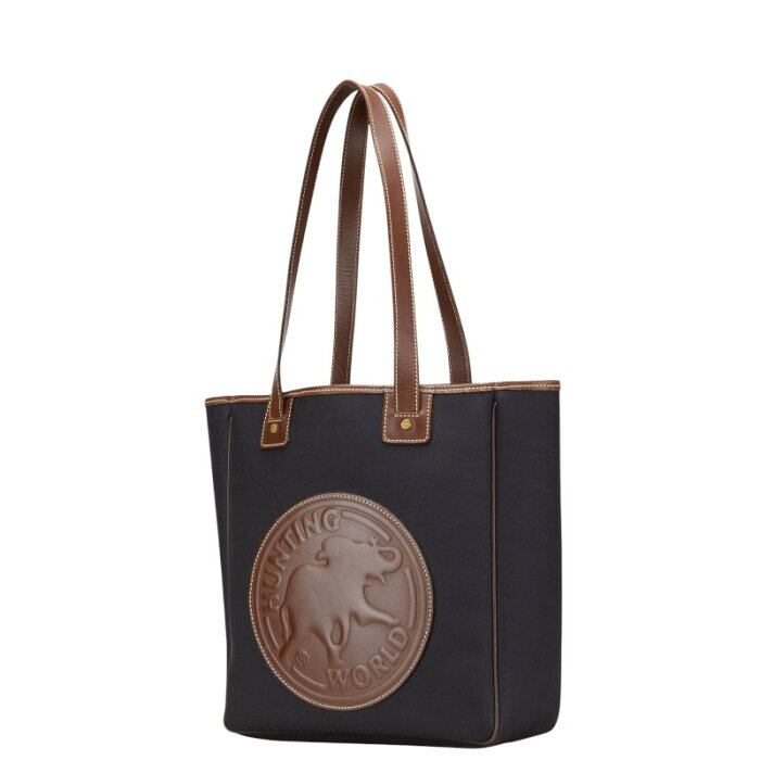 ハンティングワールド サファリトゥデイ ロゴ トートバッグ ハンドバッグ ブラック ブラウン キャンバス レザー レディース HUNTING WORLD 【中古】