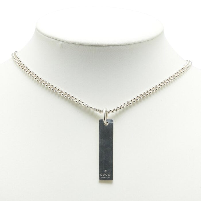 グッチ ロゴプレート ダブル ボールチェーン ネックレス SV925 シルバー レディース GUCCI 【中古】