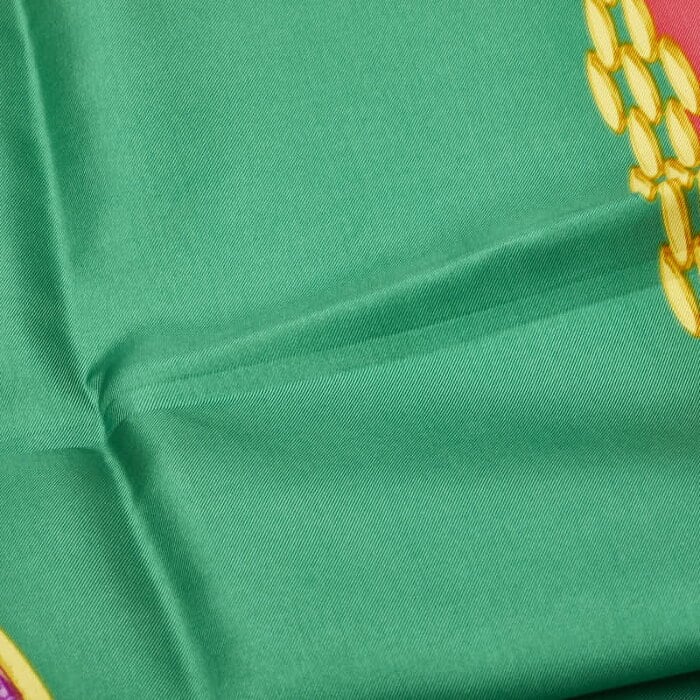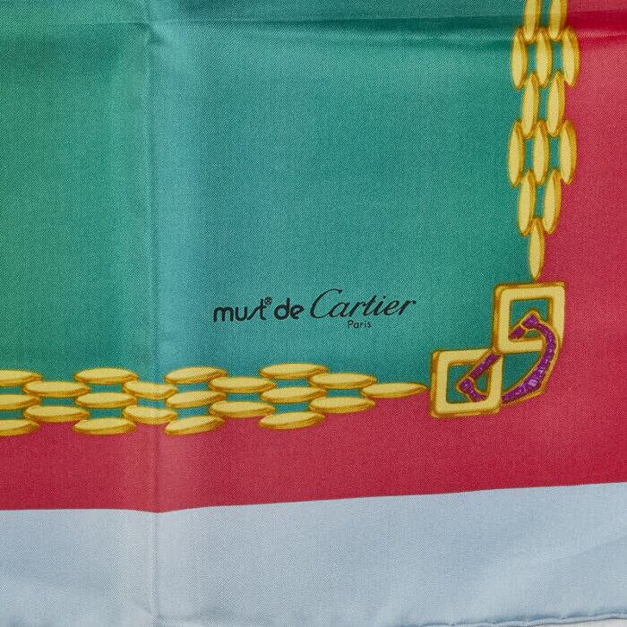カルティエ ロゴ スカーフ レッド グリーン イエロー シルク レディース CARTIER 【中古】