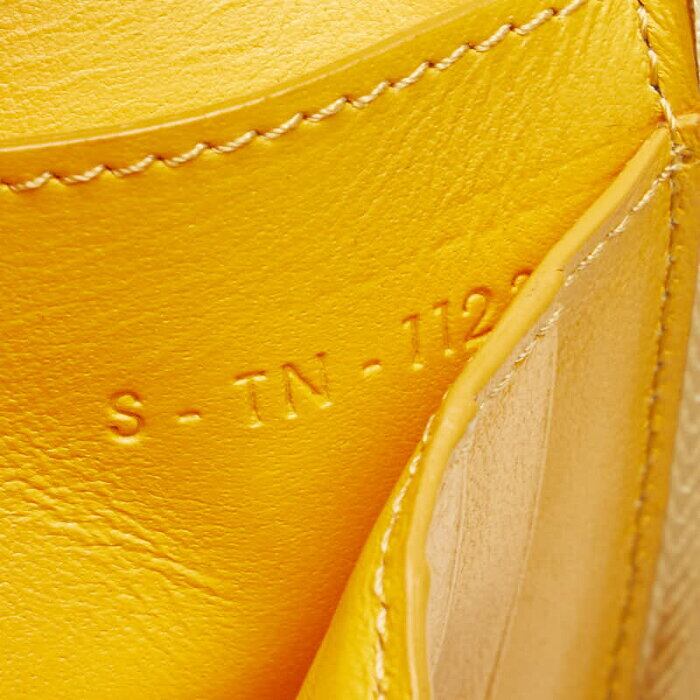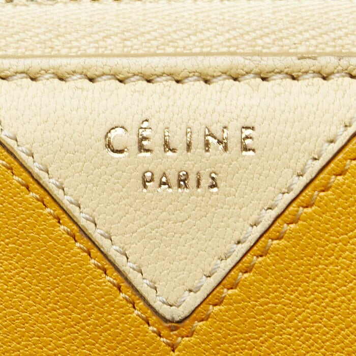 セリーヌ ロゴ 二つ折り財布 コンパクトウォレット ベージュ イエロー レザー レディース CELINE 【中古】