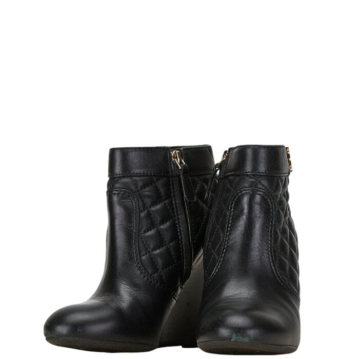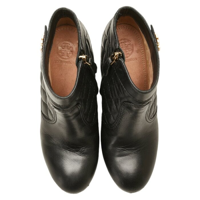 トリーバーチ キルティング ショートブーツ ブーティー サイズ:7 ブラック レザー レディース Tory Burch 【中古】
