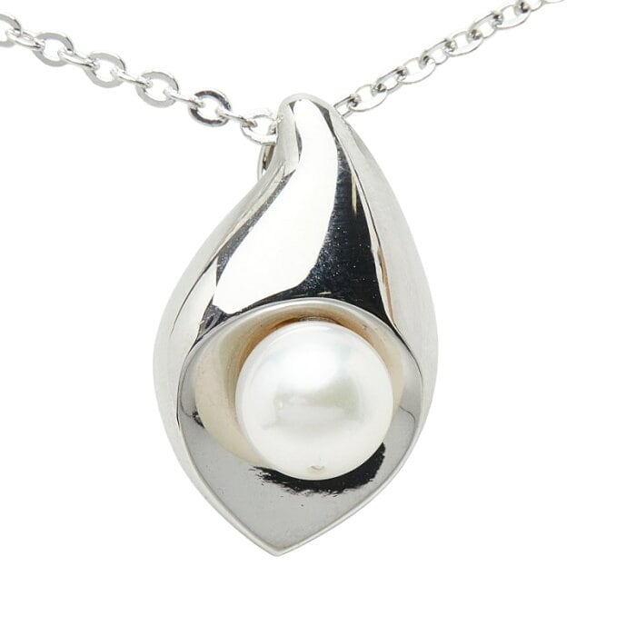 タサキ メタル SV925 シルバー アコヤパール6.3~6.4mm しずく型 NSチェーン □Sトップ ネックレス レディース TASAKI 【中古】