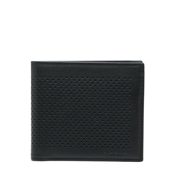 コーチ パンチング 二つ折り財布 ブラック レザー メンズ COACH 【中古】