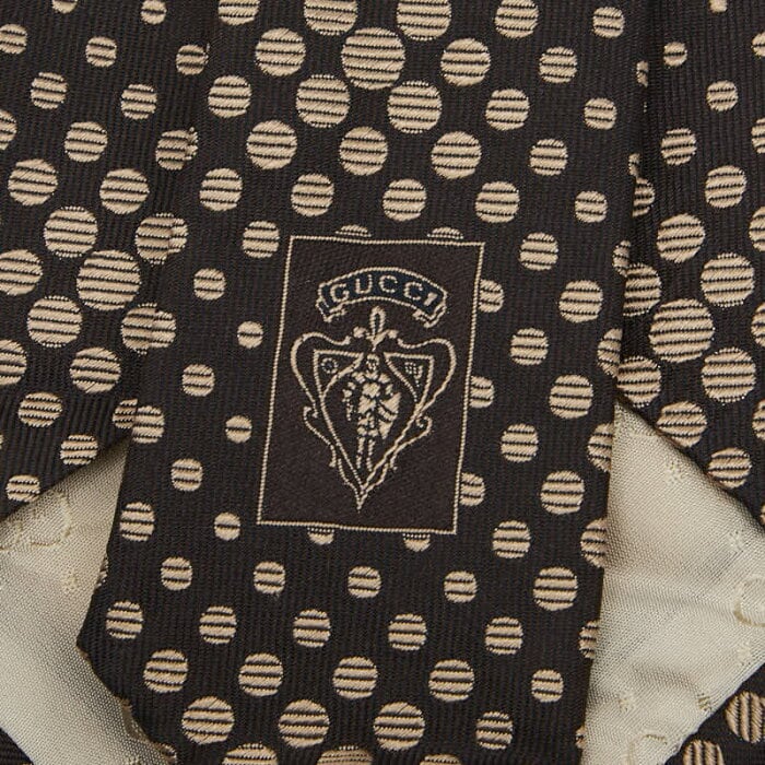 グッチ 水玉 ドット モチーフ ネクタイ ブラウン シルク メンズ GUCCI 【中古】