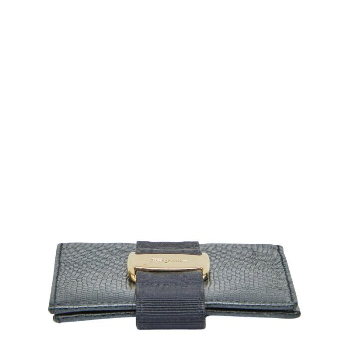 サルヴァトーレフェラガモ ヴァラリボン 二つ折り財布 ネイビー レザー レディース Salvatore Ferragamo 【中古】