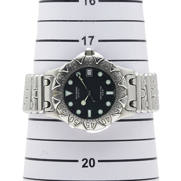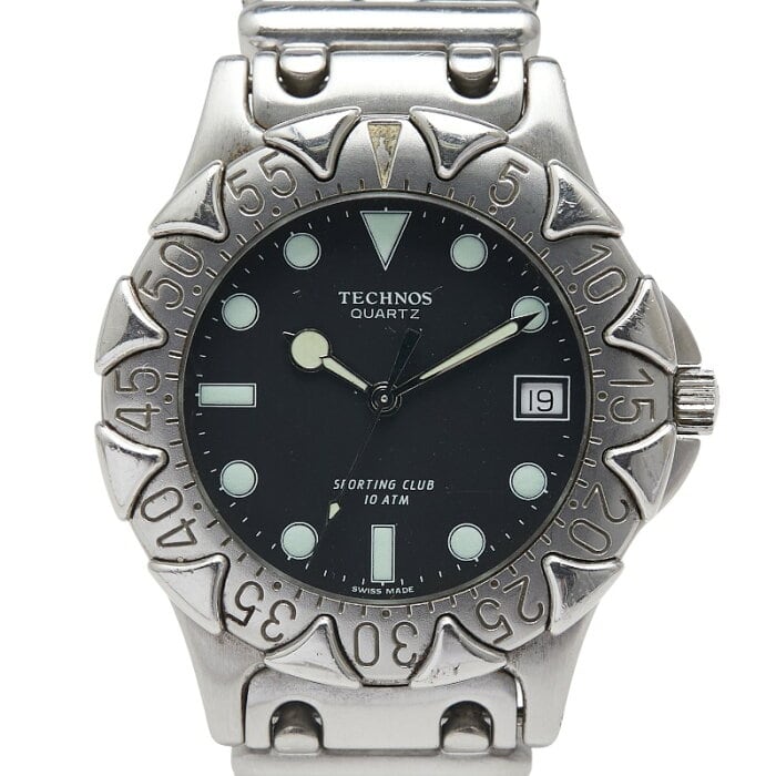 テクノス 腕時計 クオーツ ブラック文字盤 ステンレススチール メンズ TECHNOS 【中古】