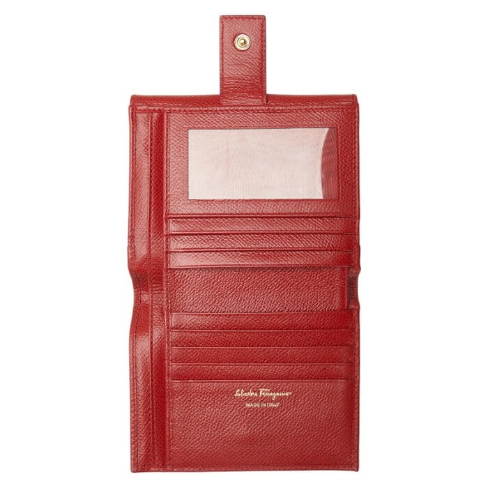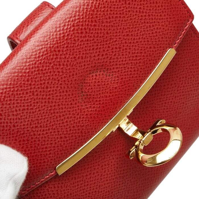 サルヴァトーレフェラガモ ガンチーニ 二つ折り財布 レッド レザー レディース Salvatore Ferragamo 【中古】