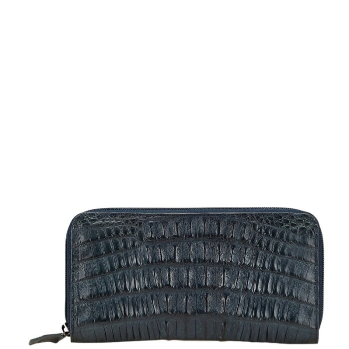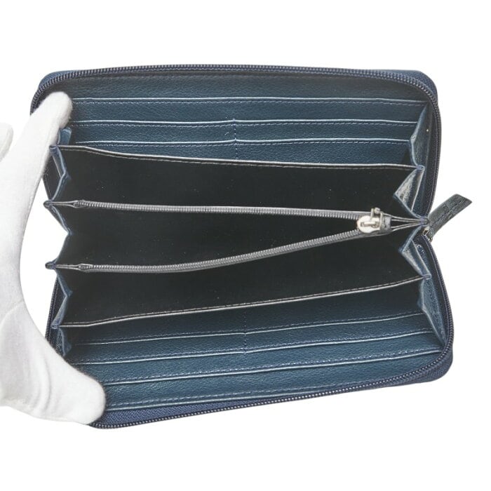 カイマン 長財布 ラウンドファスナー ネイビー レザー メンズ 【中古】