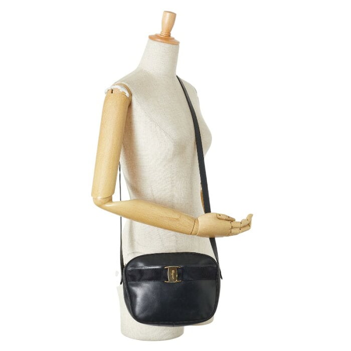 サルヴァトーレフェラガモ ヴァラ ショルダーバッグ ネイビー レザー レディース Salvatore Ferragamo 【中古】