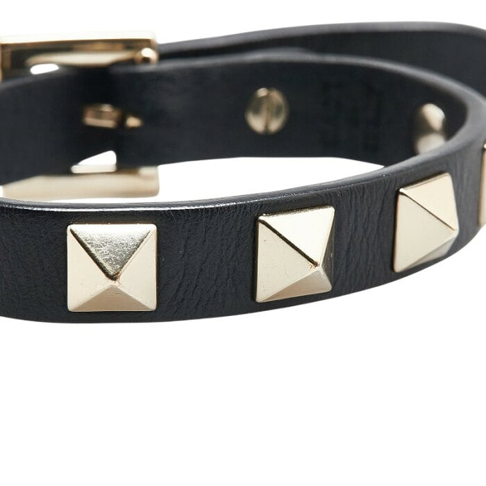 ヴァレンティノ ロックスタッズ ブレスレット ブラック レザー メッキ レディース VALENTINO 【中古】