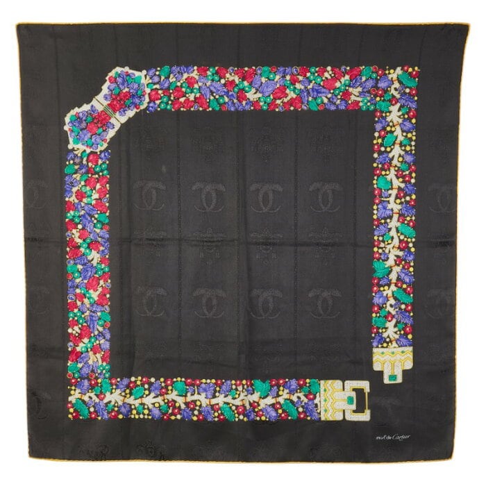 カルティエ パンテール ベルト モチーフ スカーフ グレー マルチカラー シルク レディース CARTIER 【中古】