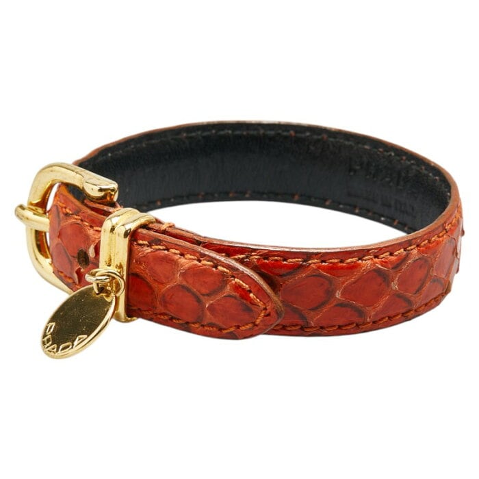 プラダ パイソン型押し ベルト ブレスレット レッド系 レザー レディース PRADA 【中古】
