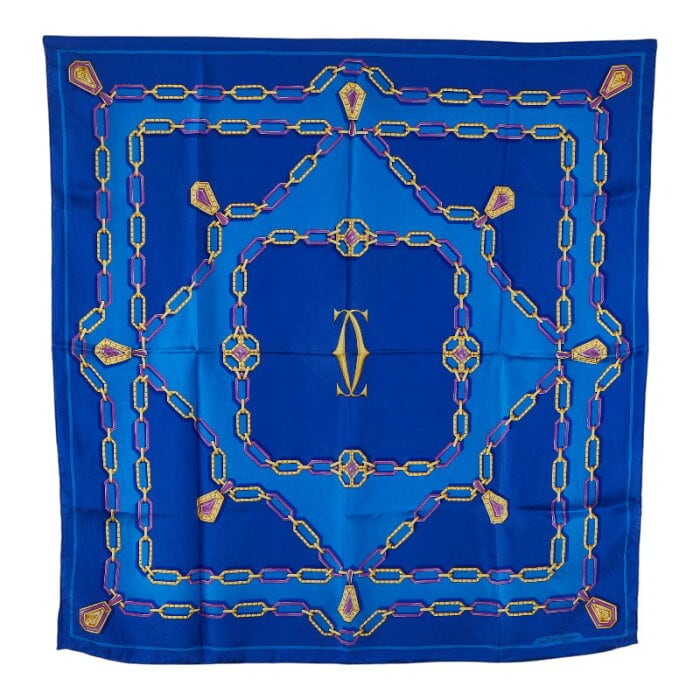 カルティエ ジュエリー柄 スカーフ ブルー シルク レディース CARTIER 【中古】
