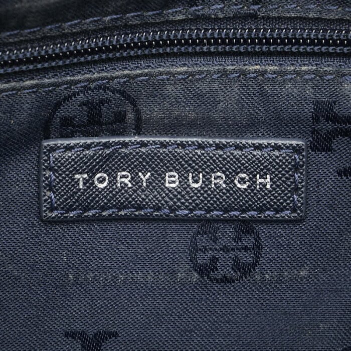 トリーバーチ ロゴ レオパード トートバッグ ネイビー ホワイト PVC レザー レディース Tory Burch 【中古】