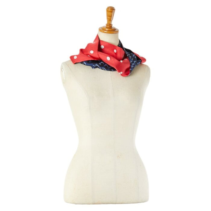 ルイ ヴィトン レオパード ドット 水玉 スカーフ スヌード M74607 レッド ネイビー シルク レディース LOUIS VUITTON 【中古】