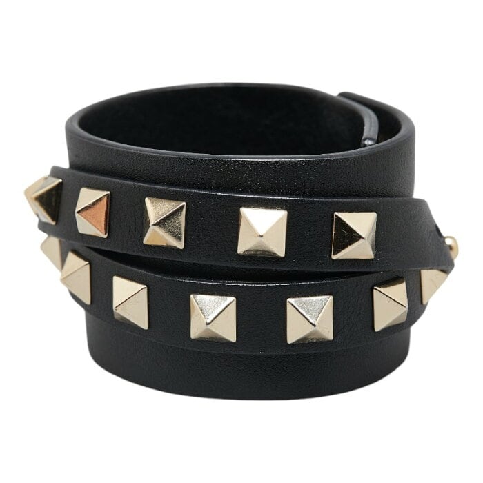 ヴァレンチノ ロックスタッズ ブレスレット ブラック レザー レディース Valentino 【中古】