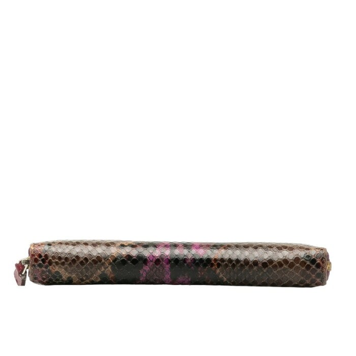 エトロ パイソン型押し ラウンドファスナー 長財布 ブラック パープル レザー レディース ETRO 【中古】
