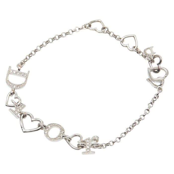 ディオール ロゴ ハート ブレスレット シルバー メタル ラインストーン レディース Dior 【中古】