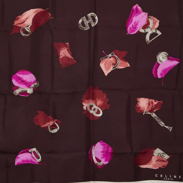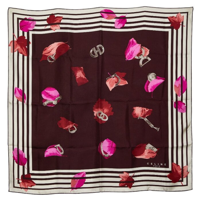 セリーヌ スカーフ ブラウン マルチカラー シルク レディース CELINE 【中古】