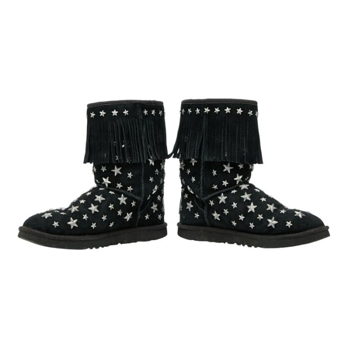 ジミーチュウ × UGG スター スタッズ フリンジ ムートンブーツ サイズ36 ブラック シルバー スウェード レディース JIMMY CHOO 【中古】