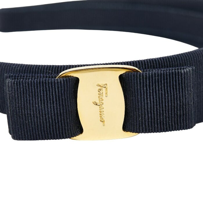 サルヴァトーレフェラガモ ヴァラリボン カチューシャ ヘアアクセサリー ネイビー キャンバス メッキ レディース Salvatore Ferragamo 【中古】