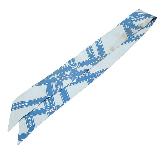 エルメス ツイリー BOLDUC AU CARRE ボルデュックリボン スカーフ ブルー シルク レディース HERMES 【中古】