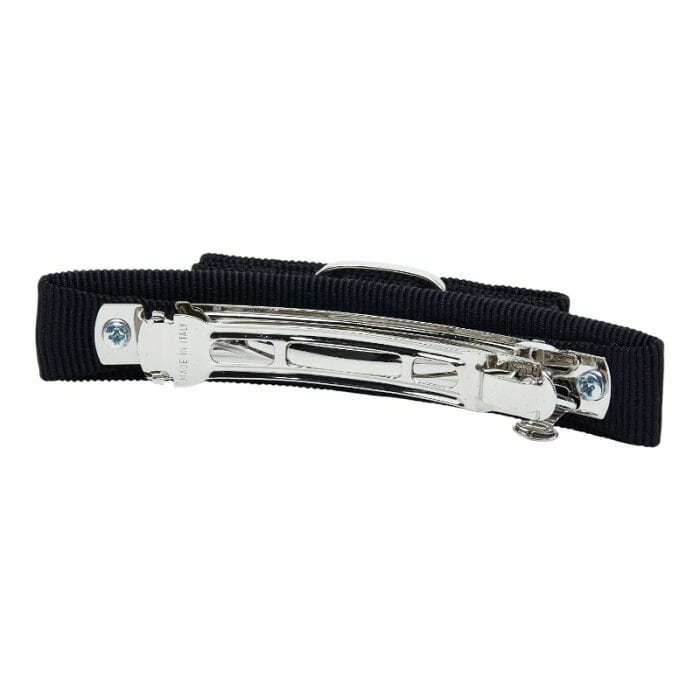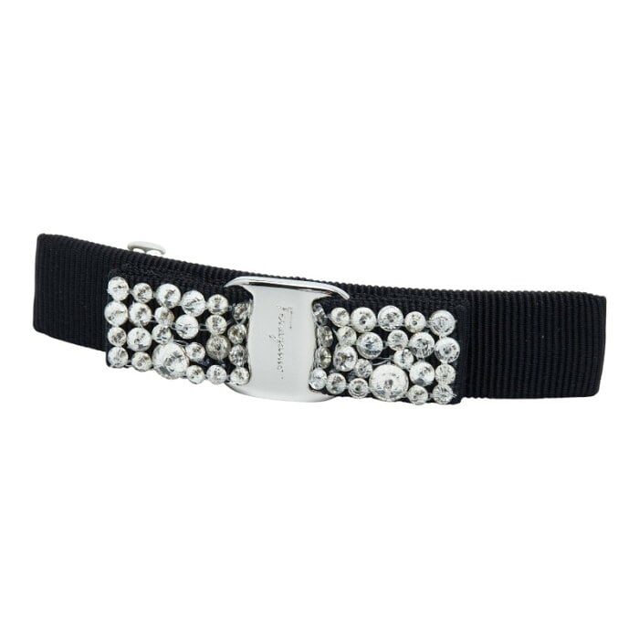 サルヴァトーレフェラガモ ヴァラリボン ラインストーン バレッタ ヘアアクセサリー ブラック シルバー キャンバス メタル レディース Salvatore Ferragamo 【中古】