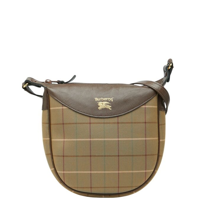 バーバリー チェック ショルダーバッグ カーキグリーン ブラウン キャンバス レザー レディース BURBERRY 【中古】