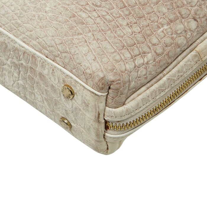 PAVE LOCK クロコダイル ヒマラヤ ハンドバッグ ホワイト アイボリー レザー レディース 【中古】