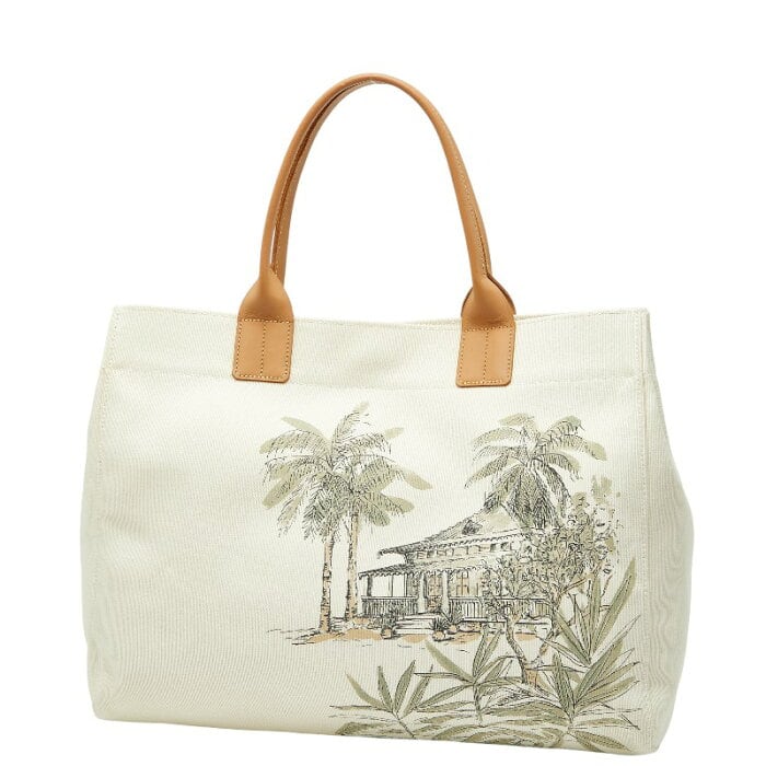 ロンシャン リゾート モチーフ トートバッグ 520339 アイボリー グリーン ベージュ キャンバス レザー レディース Longchamp 【中古】