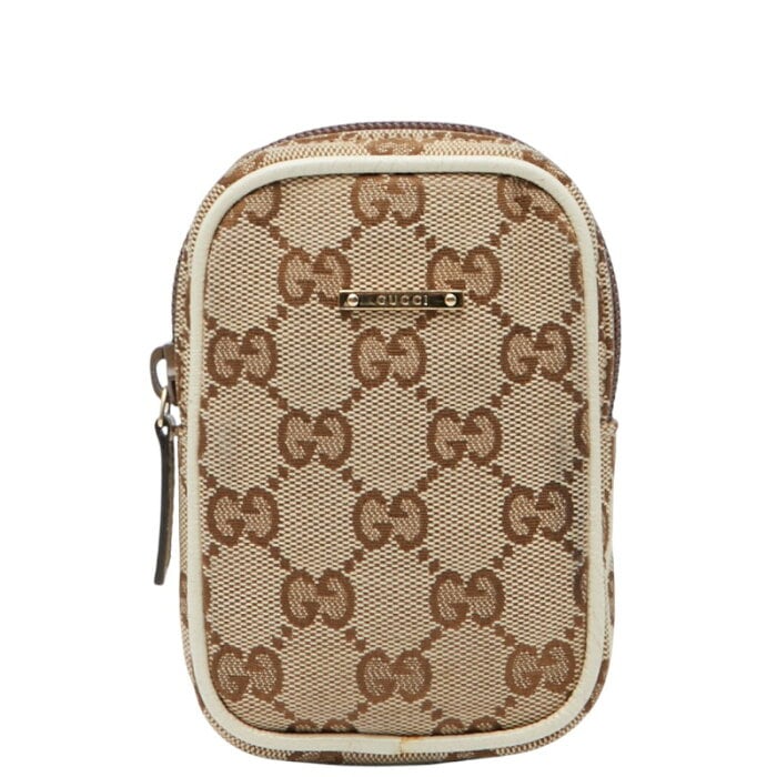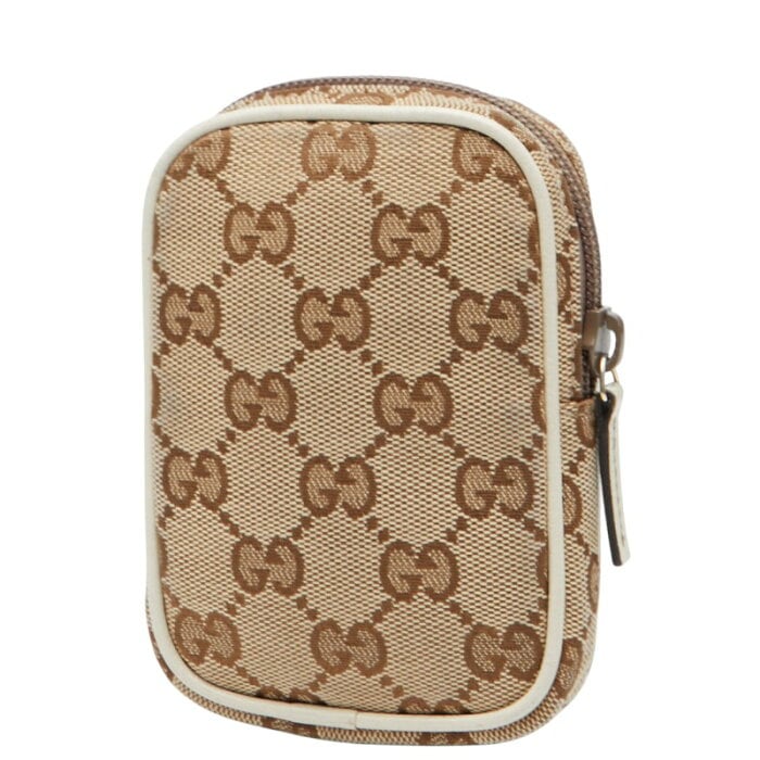 グッチ GGキャンバス ポーチ シガレットケース たばこケース 115249 ベージュ ホワイト キャンバス レザー レディース GUCCI 【中古】