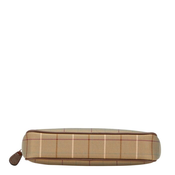 バーバリー チェック クラッチバッグ カーキグリーン ブラウン キャンバス レザー レディース BURBERRY 【中古】