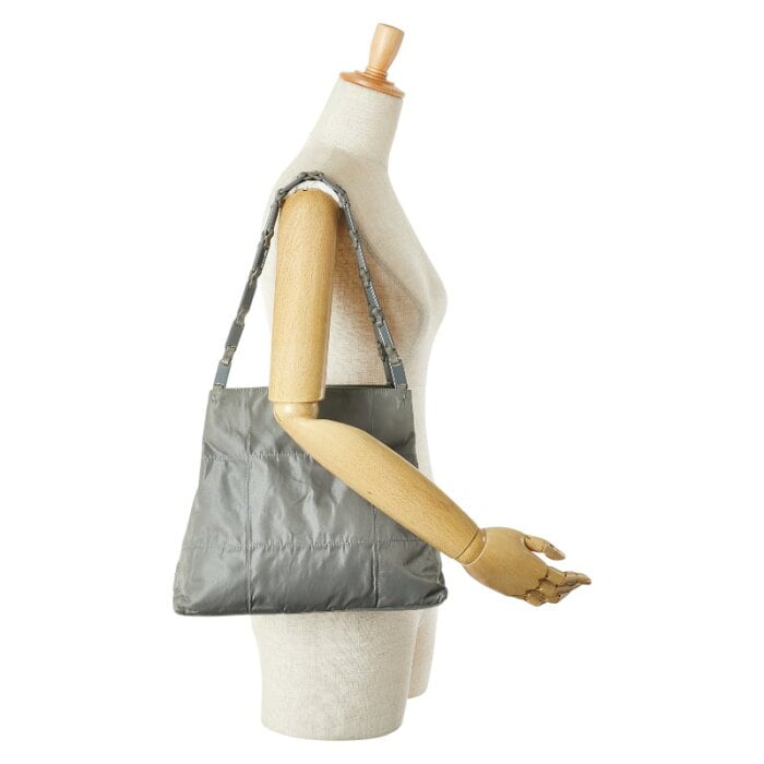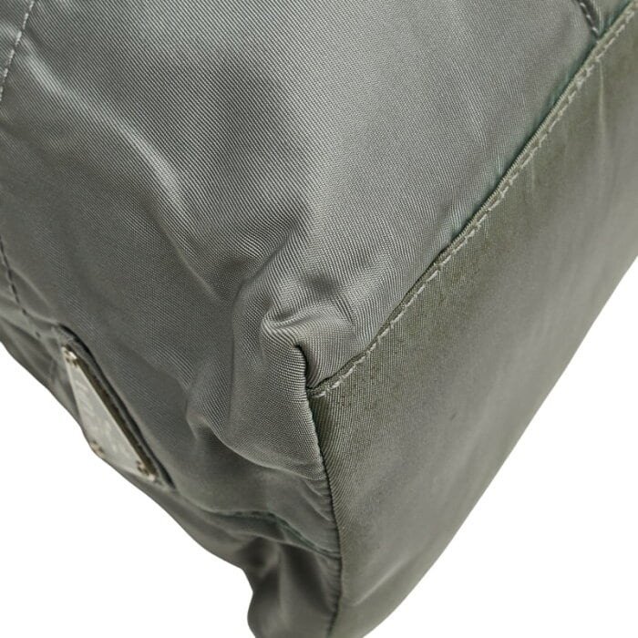 プラダ 三角ロゴプレート トートバッグ B8851 グレー ナイロン レザー レディース PRADA 【中古】