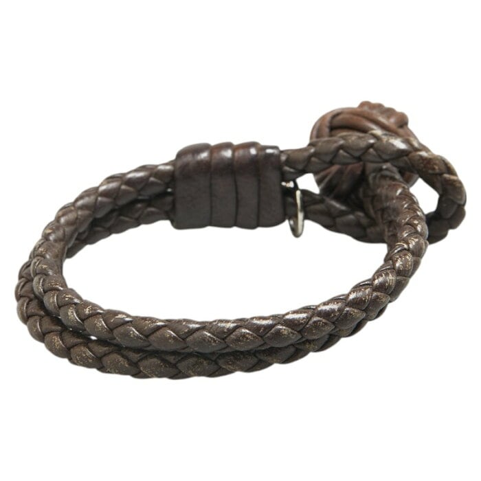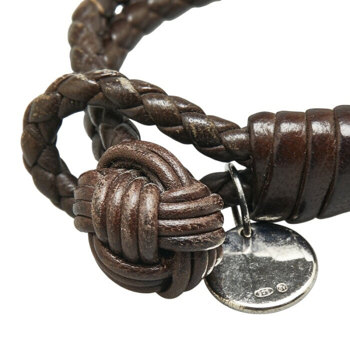 ボッテガヴェネタ イントレチャート ブレスレット ブラウン レザー SV925 シルバー レディース BOTTEGAVENETA 【中古】