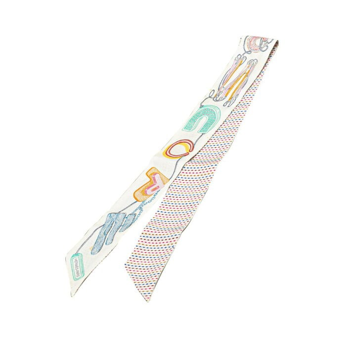 エルメス ツイリー Chevaloscope Neon シュヴァロスコープ ネオン スカーフ ホワイト マルチカラー シルク レディース HERMES 【中古】