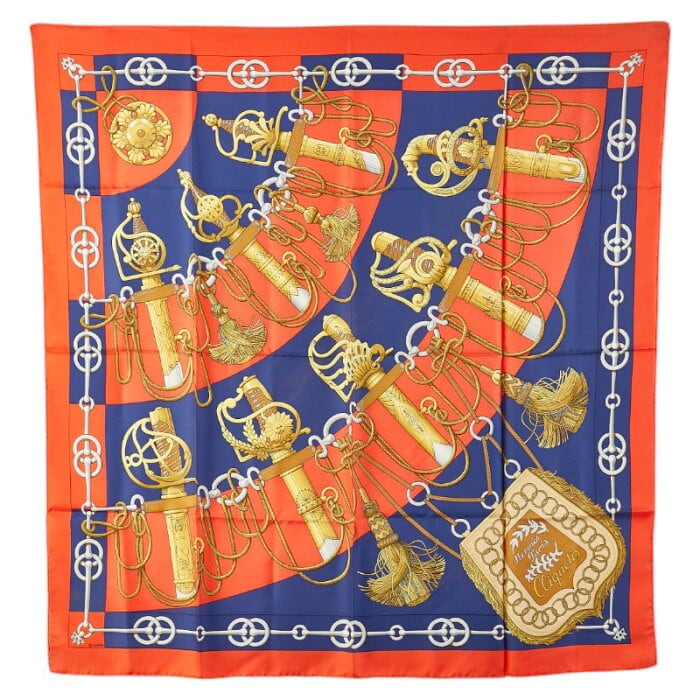 エルメス カレ90 Cliquetis カチカチ 剣柄 スカーフ レッド マルチカラー シルク レディース HERMES 【中古】